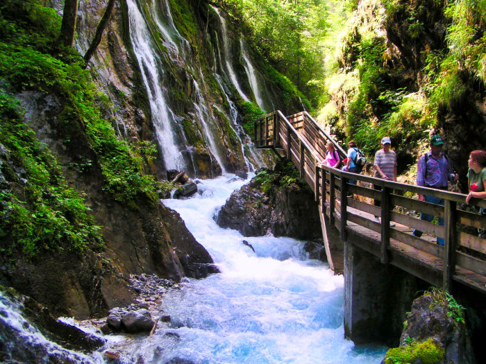 Die Wimbachklamm ist eine spektakuläre Schlucht in der Nähe von Ramsau bei Berchtesgaden. Sie gilt als eine der imposantesten und schönsten Klammen der bayerischen Alpen. Die Klamm wurde durch den Wimbach, einen Gebirgsbach, geformt, der sich über Jahrtausende hinweg seinen Weg durch das Gestein gebahnt hat. Ein Besuch der Wimbachklamm bietet Wanderern die Möglichkeit, entlang eines gut ausgebauten Wanderwegs durch die enge Schlucht zu spazieren. Holzstege und Brücken führen über den rauschenden Bach und ermöglichen spektakuläre Ausblicke auf die beeindruckende Naturkulisse. Besonders beeindruckend ist die Klamm während der Schneeschmelze im Frühjahr oder nach starken Regenfällen, wenn das Wasser besonders kraftvoll durch die Schlucht tost. Die Wimbachklamm ist Teil des Nationalparks Berchtesgaden.